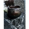 Květináč je záměrně nesouměrného tvaru. Glazura má měděnou barvu.