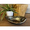 Tato keramická mísa voní luxusem. Má asymetrický tvar a černozlatou glazuru. Položte ji na jídelní stůl, či na komodu vedle vaší oblíbeně květiny, nebo ji kreativně zavěste na stěnu, či postavte na poličku.